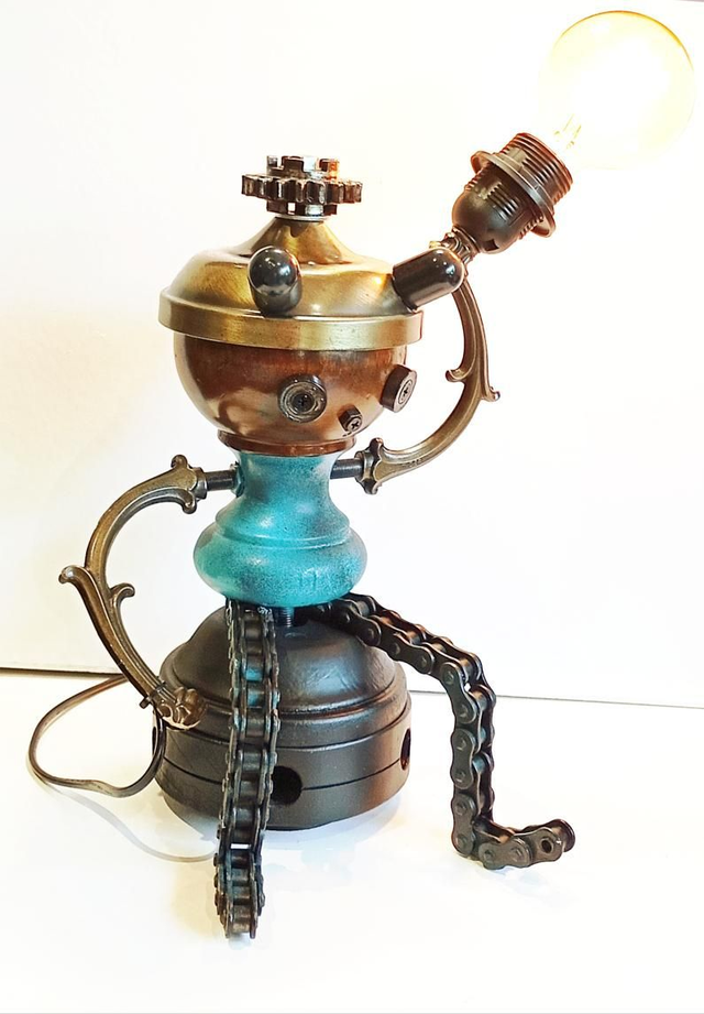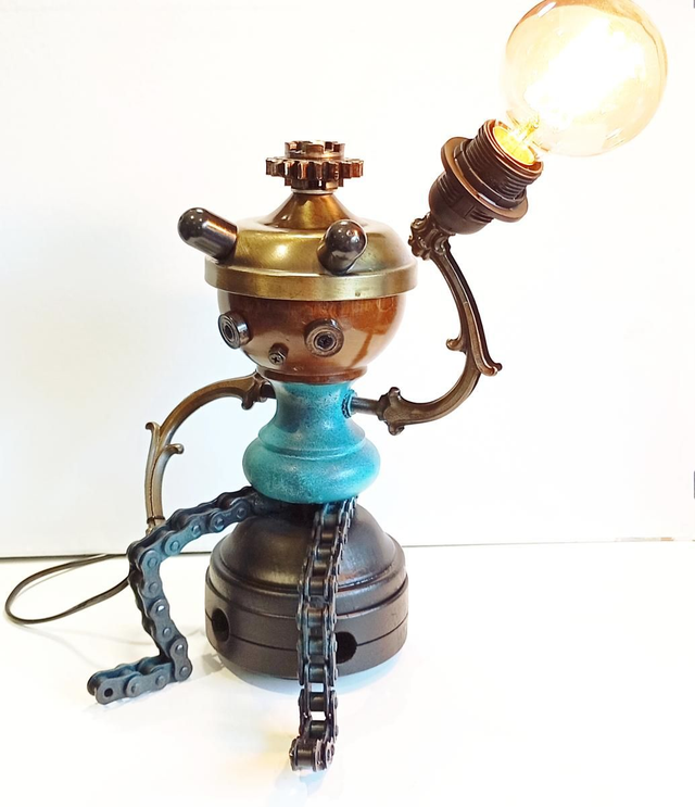 Porteur de Lumière, Lampe d'ambiance déco à poser esprit personnage Steam/Goth issue de recyclage, Artisanat Français
